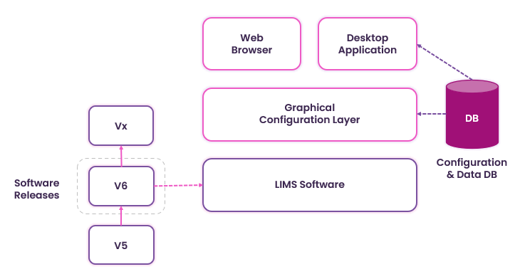 - Configuration data stored within the LIMS database for complete stability.