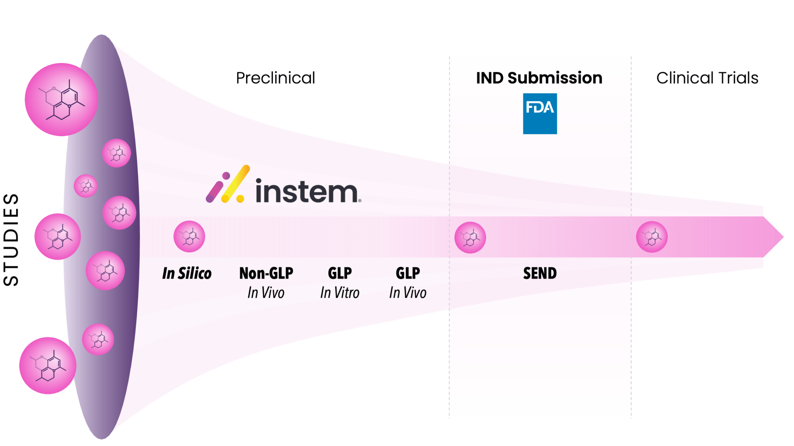 With advanced in silico toxicology, centralized study management, modern laboratory execution, and SEND-ready submission solutions, Instem is a single source provider of the tools needed to navigate the data path through preclinical to IND Submission. Our solutions help maintain data integrity across target identification, discovery, lead optimization, preclinical efficacy, toxicology, Chemistry, Manufacturing and Control (CMC) readiness, and regulatory submission. The result is faster, more confident decision-making, reduced developmental risk, and higher-quality, regulatory-ready data at every stage of drug discovery.
