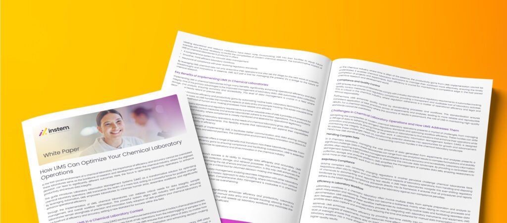 Complete the form to download the White Paper: How LIMS Can Optimize Your Chemical Laboratory Operations and see how a next-generation LIMS can help your lab achieve new standards of efficiency and excellence.