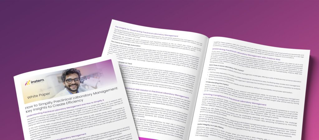 Preclinical lab management comes with major challenges, from managing vast amounts of data and meeting regulatory requirements to minimizing errors and keeping projects on schedule. This resource explores how automation and centralized systems like LIMS, EDC, and DMS can streamline workflows, improve data accuracy, and reduce inefficiencies across the lab.